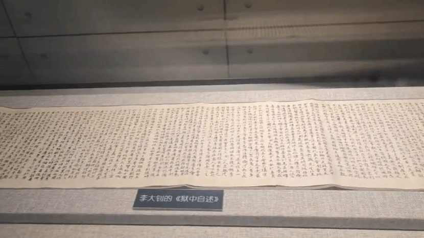 在帝国主义的多次搜捕下,李大钊被捕入狱,在被捕入狱的22天时间里,敌人对他进行了多次秘密审讯,百般折磨,但李大钊始终大义凛然没有泄露党的任何机密,俨然一副共产党领袖之气概。展馆中展现的李大钊狱中亲笔书写的《狱中自述》,“钊自束发受书,即矢志努力于民族解放之事业,实践其所信,励行其所知,为功为罪,所不暇计。”字里行间尽显初心坚定,看后令人心绪久久不能平复。