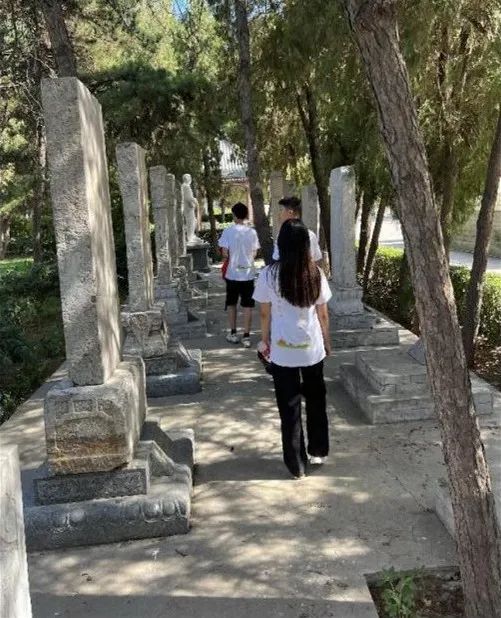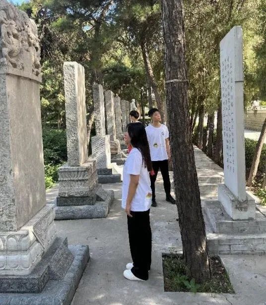 随后在指导老师蒙翠平和王峥的带领下,我们走进了陵园的深处,一块块的石碑是对先烈事迹的歌颂,是对先烈的无比怀念,一块块的石碑使我们忍不住驻足在此,想要去了解它的前世今生。我国现代著名诗人藏克家曾这样写道:“有的人活着,他却死了;有的人死了,他却活着”。这两句诗用在解释 “人民英雄,虽死犹生”的碑文,贴切自然。这也是革命烈士 “为人民利益而死”的绝妙注脚。