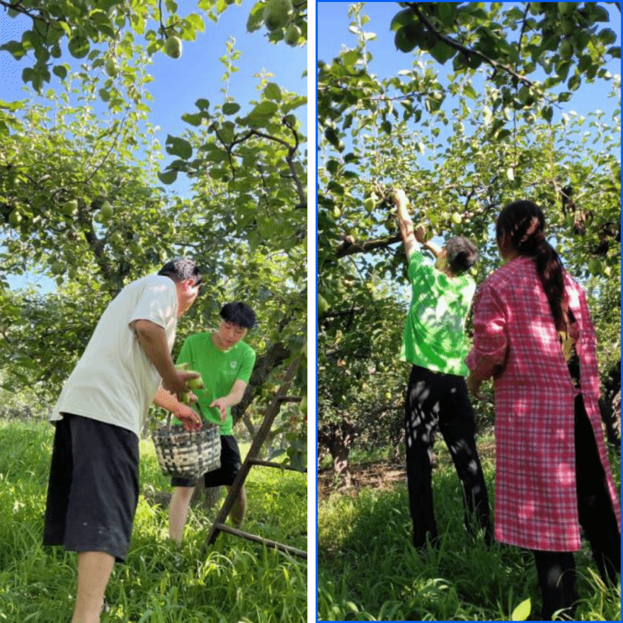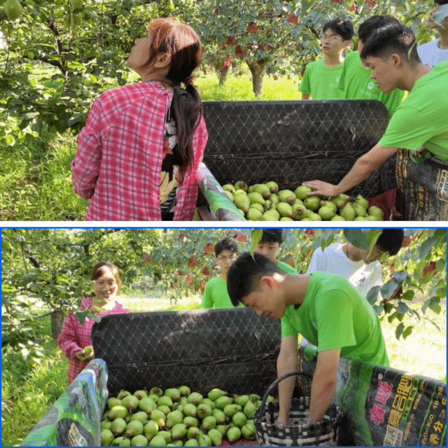 接着,我们又进行实地采摘并与农户进行了深入的交流。我们了解到他们的种植经验、困难和问题。他们普遍反映销售渠道不畅、病虫害防治成本高以及天气变化对梨树的影响等问题。通过与农民的交谈,我们向他们提供了相关的建议和解决方案,开拓新的销售渠道、加强病虫害防治工作等。