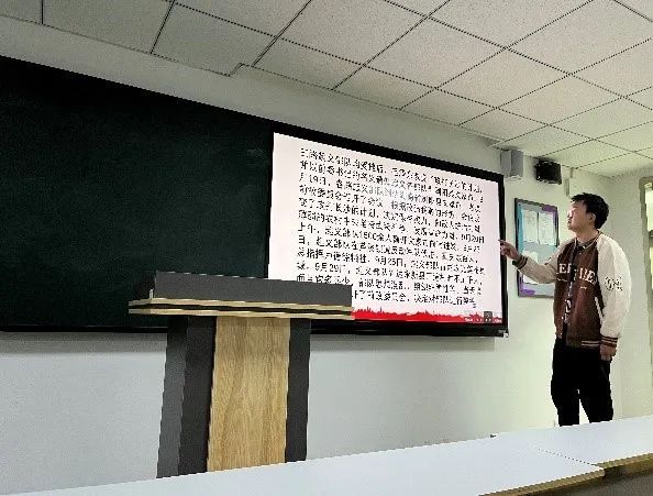 软件工程一班马宇彤同学向大家介绍了三湾改编的历史背景,使同学们了解到在三湾改编之前,已经诞生达六年之久的中国共产党人还没有拥有一支独立的军事武装。可以说,我们党掌握或影响的叶挺部队、贺龙部队等之所以在三大起义中被逐次击溃,其主要原因是缺乏党对军队的绝对领导。软件工程二班王颖同学介绍了三湾改编的主要内容,详细讲解了部队缩编、支部建在连上、官兵平等以及三项纪律与六项注意,使同学们对三湾改编有了更深的认识。