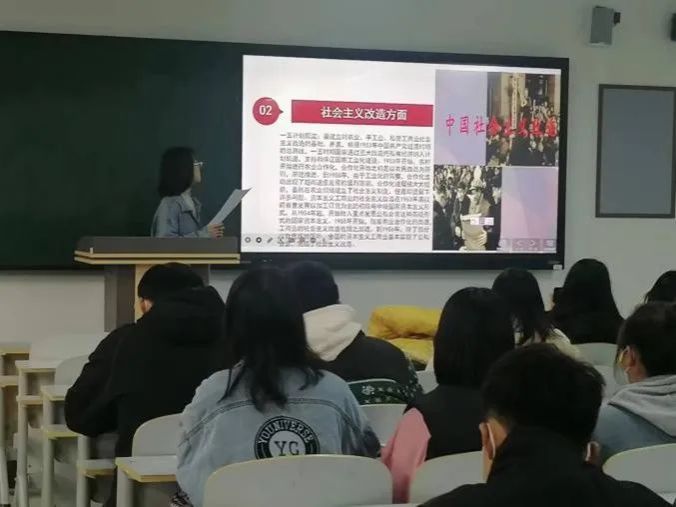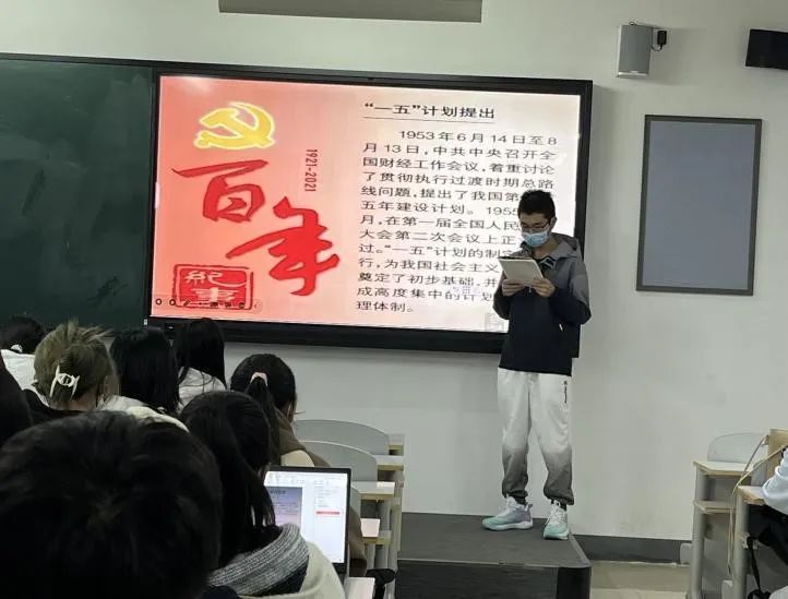 电子商务1班宁梓艳同学讲到了一五计划的背景:从1949年10月中华人民共和国建立到1952年底,是中国国民经济的恢复时期。这一时期,国家采取了一系列方针、政策和措施,一方面,制止了中华民国时期国民党政府遗留下来的恶性通货膨胀,稳定了市场物价,恢复了被战争严重破坏的国民经济。另一方面,基本上完成对封建土地制度的改革,解放农村生产力,发展社会主义国营经济,确立了国营经济对资本主义经济和个体经济的领导地位,为有计划地进行社会主义经济建设创造了条件。电子商务2班的杨志雄同学讲到了根据党在过渡时期的总路线的要求,“一五”计划所确定的基本任务是:集中主要力量进行以苏联帮助我国设计的156个建设项目为中心、由694个大中型建设项目组成的工业建设,建立我国的社会主义工业化的初步基础,发展部分集体所有制的农业生产合作社,以建立对农业和手工业社会主义改造的基础,基本上把资本主义工商业分别纳入各种形式的国家资本主义的轨道,以建立对私营工商业社会主义改造的基础。