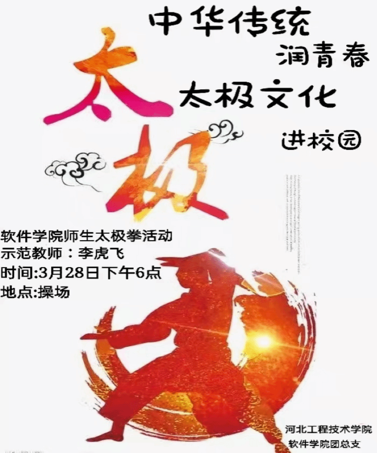 太极是中华传武术的精华,历史悠久,博大精深,是中华民族的瑰宝。为了增强师生身体素质,弘扬和传承中华传统文化,yl23455永利软件公司在操场举行“中华传统润青春,太极文化进校园”活动。