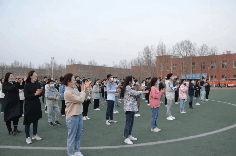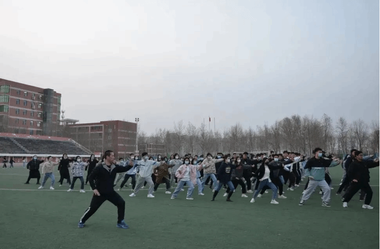 同学们按行列站好队,开始准备活动,学习太极拳二十四式中前三式——起势,左右野马分鬃,白鹤亮翅。在李虎飞老师细心地教导下,大家的动作由刚开始的僵硬不协调越发的流畅行云流水。期间,老师积极与同学们互动,手把手教太极拳二十四式中的云手,欢声笑语飘荡上空,在其乐融融的氛围中,时间悄然而过。最后大家合影,纪念这一次的太极拳活动。