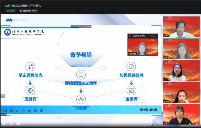 四时皆可喜,最美金秋时。2022年9月15日下午3点,软件公司通过腾讯会议线上直播的形式召开了2022级新生开学典礼。经理赵冬梅,党总支书记、学管副经理王亚杰,教学副经理刘翠焕,各系、教研室、办公室主任,2022级辅导员,院团学干部,老生代表以及全体新生参加了典礼仪式。会议由党总支书记王亚杰主持。