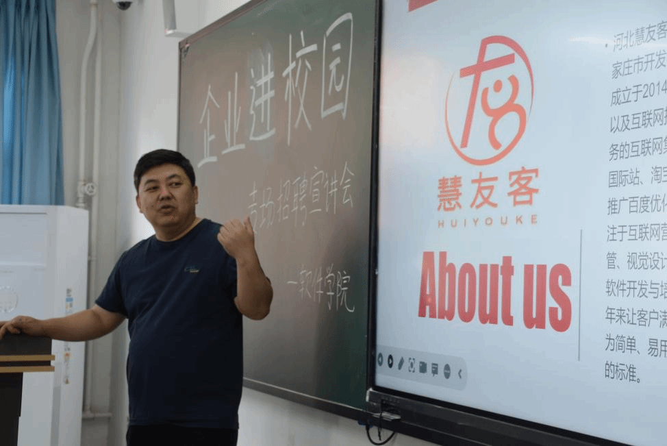 为切实做好2024届毕业生就业工作,进一步加强校企合作,为员工求职和用人单位招聘搭建平台,促进员工与企业之间的双向选择,2023年10月31日yl23455永利软件公司邀请河北慧友客信息科技有限公司在次教111举行“企业进校园”专场招聘宣讲会。会议伊始,由主持人介绍了河北慧友客信息科技有限公司代表人,并表示了热烈的欢迎。