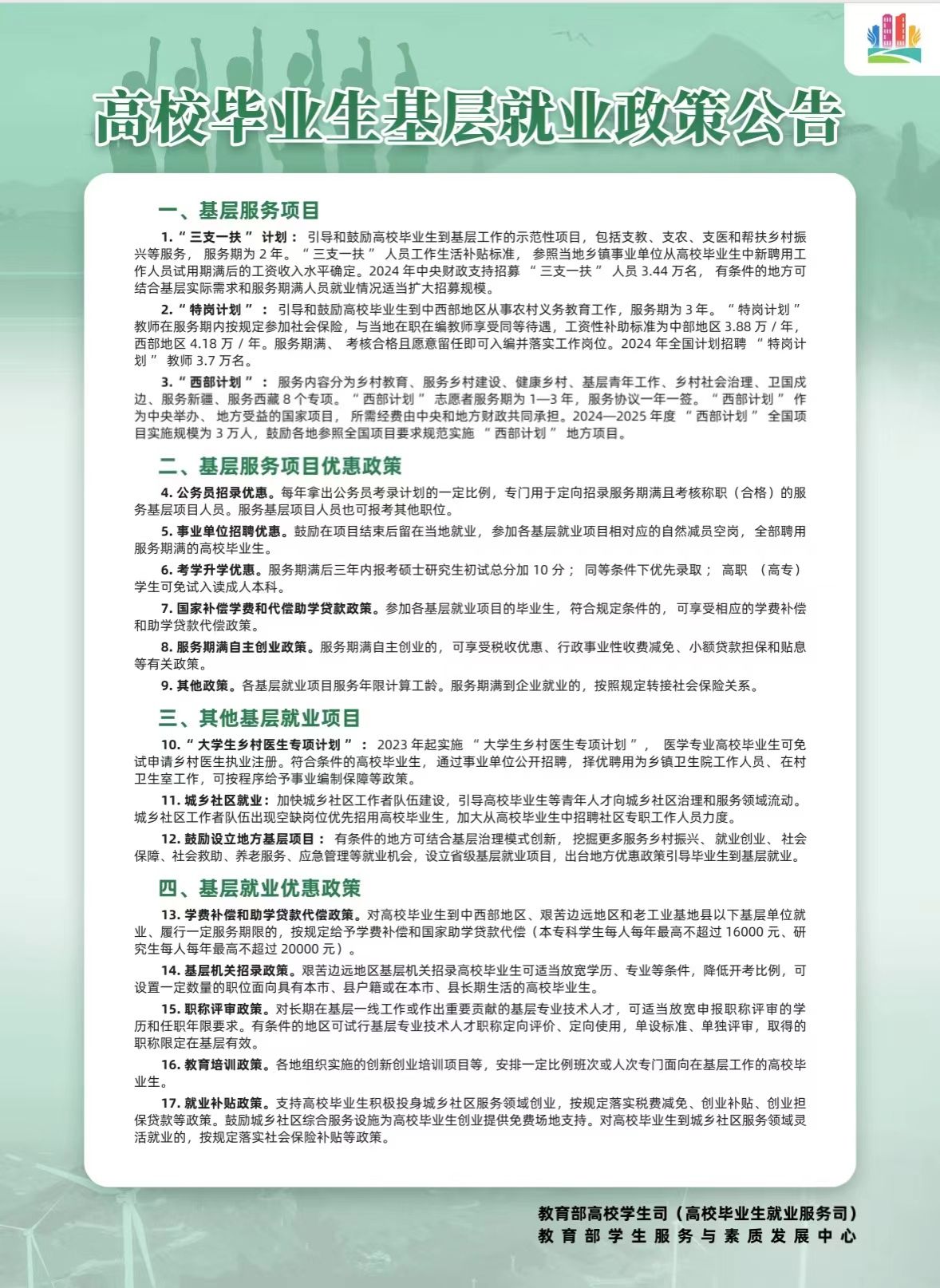 高校毕业生基层就业政策公告