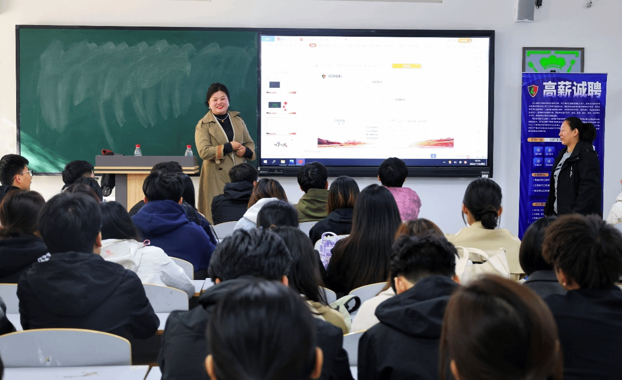 活动伊始,各企业负责人结合公司开设专业与企业用人需求,先后以视频、图片、PPT等方式,从行业现状、企业文化、企业岗位需求、就业市场形势、薪资待遇、企业人才储备及人才培养等多方面进行宣讲,帮助同学们明确未来的职业方向,做好职业生涯规划。他们以丰富的案例、幽默的语言及良好的互动带动宣讲活动的气氛。宣讲会场面热烈,掌声不断。