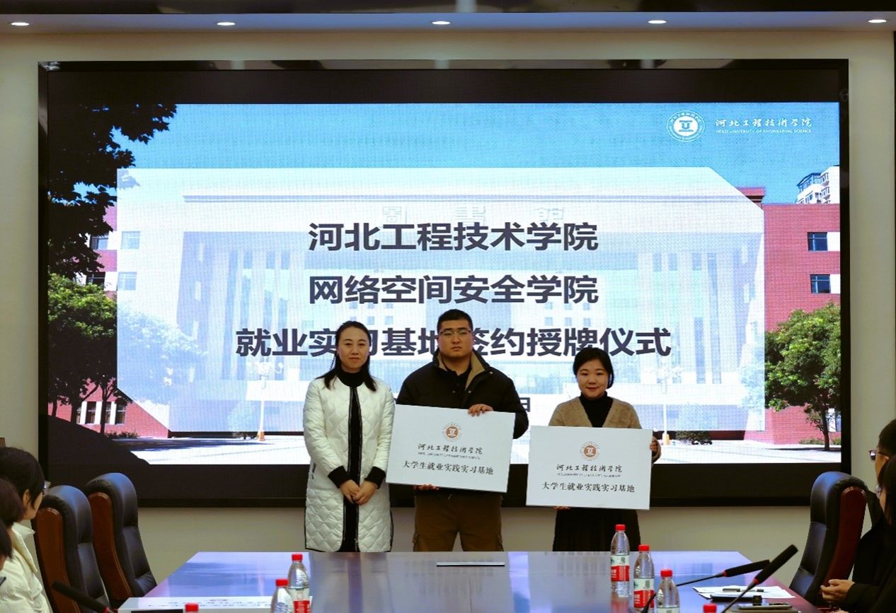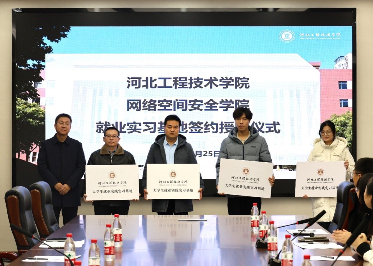 签约授牌仪式现场,yl23455永利网络空间安全公司党总支书记学管副经理樊风彩首先致欢迎辞,对各位企业家百忙之中来参加本次招聘会表示诚挚的欢迎和衷心的感谢。随后,校企双方签署了合作协议,并与河北壹录有你教育科技有限公司、石家庄市鸿审软件有限公司、北京鱼游四海科技有限公司、河北微宝云企业管理咨询有限公司、石家庄萱草科技生物科技有限公司、神州云星科技有限公司数六家公司进行授牌仪式。