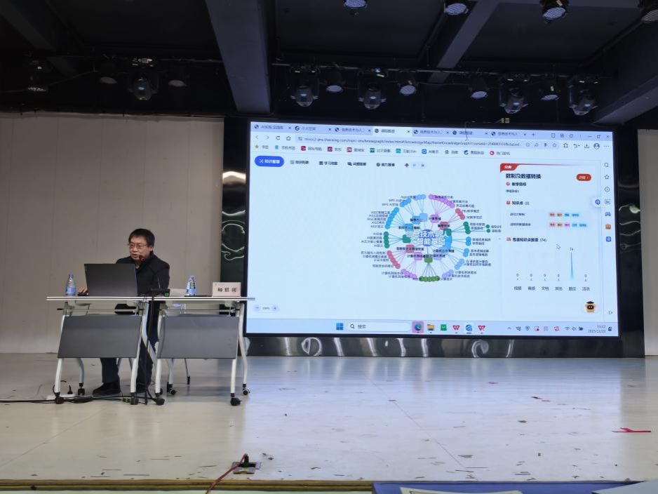 培训中,师胜利老师围绕多个关键领域展开讲解。他深入介绍了专属知识库和AI助教的应用,让教师们了解到如何借助这些工具高效整合教学资源、辅助日常教学答疑。在AI命题和智能批阅方面,详细阐述了其原理与操作,可极大提高教学测评效率。对于AI实践和任务引擎、多维知识图谱构建以及AI学情分析等内容,师老师也通过生动案例和实际操作演示,让抽象概念变得清晰易懂。